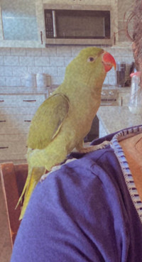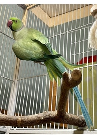 Ad Indian Ringneck 75 OFF. Very tame talks shoulder and paper trained green Indian ringneck with cage. Not sure on the gender but we just call it a he.